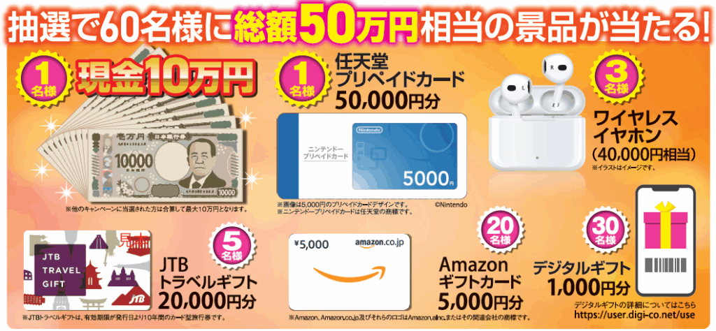 抽選で60名様に総額50万円相当の豪華景品が当たる!